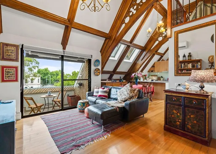 The spacious The Sanctuary 3Br Heritage Church Conversion Melbourne apartment is nestled in the Carlton district, a 5-minute walk from the dessert restaurant Brunetti. Wi-Fi and complimentary private parking are among the essentials at guests' disposal.